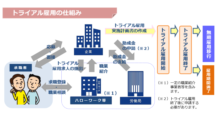 参考:厚生労働省トライアル雇用助成金(一般トライアルコース)