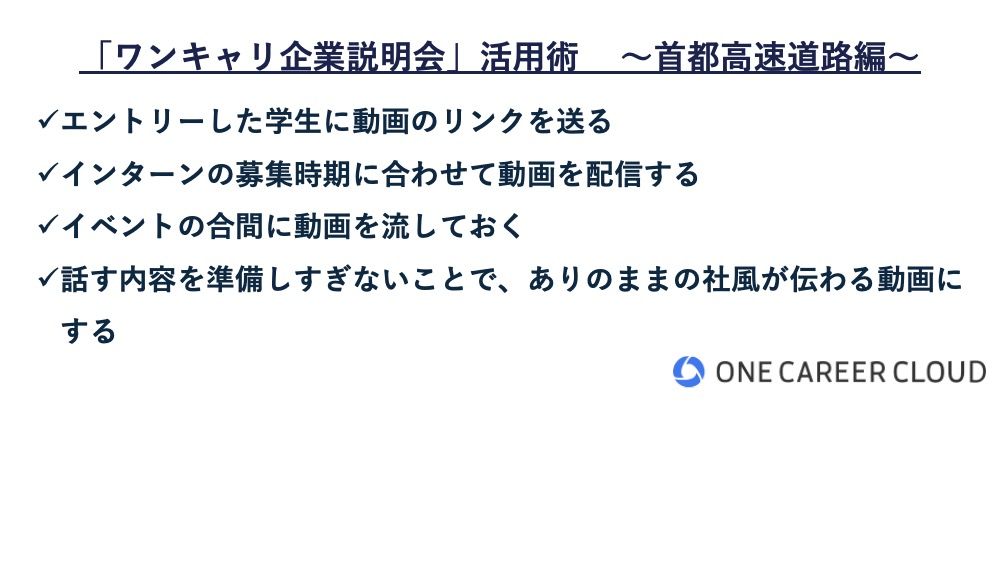 ――求人広告掲載や動画配信でONE CAREERを利用していただいています。動画の「ワンキャリ企業説明会」はどのように活用されましたか?