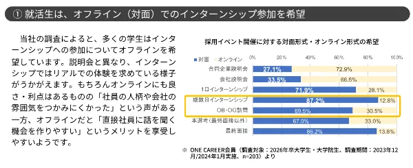 - インターンシップをテーマに、学生の満足度を高めるプログラム設計や、不満の原因となるポイントを明らかにしました。