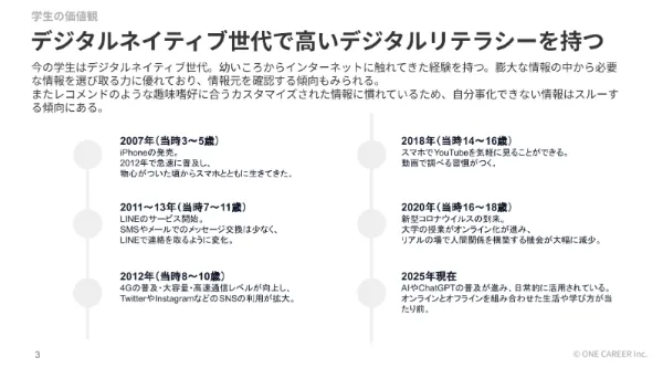 - 本レポートでは、弊社ワンキャリアの独自調査をもとに、「Z世代学生の価値観や就活情報の収集傾向や志向、そして企業選択の軸」を徹底解剖しています。