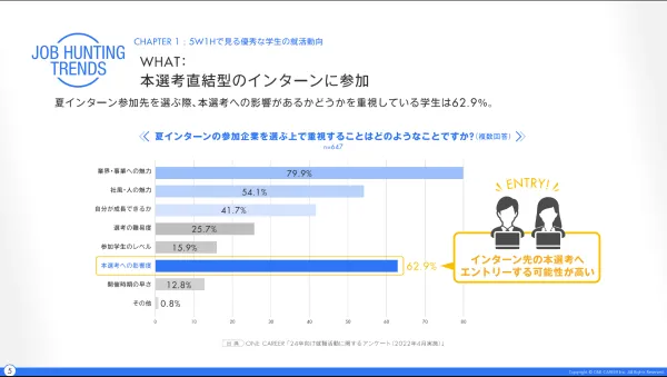 【採用担当者向け】優秀な学生を採用するための秘策とは こんな方におすすめ優秀な学生の志望度を効率的に高めたい方夏のインターンを通じて学生との接点を強化したい方 概要優秀な学生を狙う企業が採用活動として行うべき施策、またクチコミの活用方法についても解説します。 資料で分かること優秀な学生の就活動向優秀な学生を狙うために企業が行うべき施策
