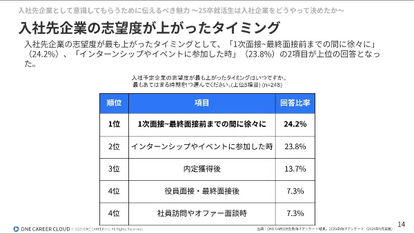 - 学生の志望度が最も上がるタイミング