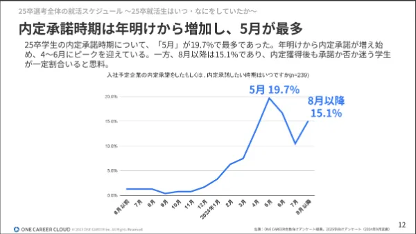 - 25卒生の就職活動の振り返り調査を基に、選考全体のスケジュールや学生の志望度が上がるタイミング、企業選びに影響を与えた要素を分析しました。就活における文系と理系の違いや、内定辞退の理由も紹介します。
