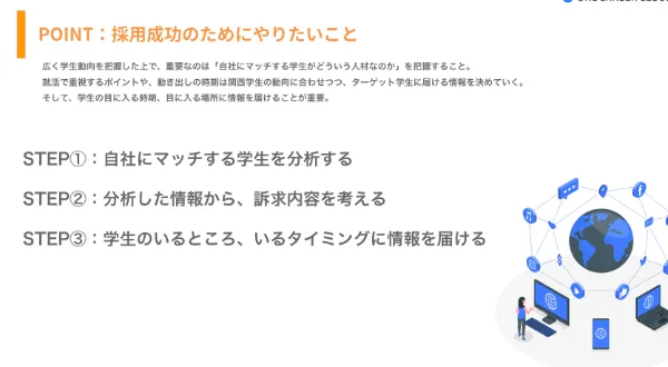 データから読み解く関西エリアの学生動向とは こんな方におすすめ関西企業の新卒採用担当者関西の学生の就活動向が知りたい 概要アンケートやワンキャリアが抱える学生データから関西学生の就活動向についてまとめました。関西学生の採用ポイントについても掲載していますのでぜひ採用施策のご参考にしてください。 資料で分かること関西の学生の就活軸関西の学生の就活スケジュール採用成功のポイント
