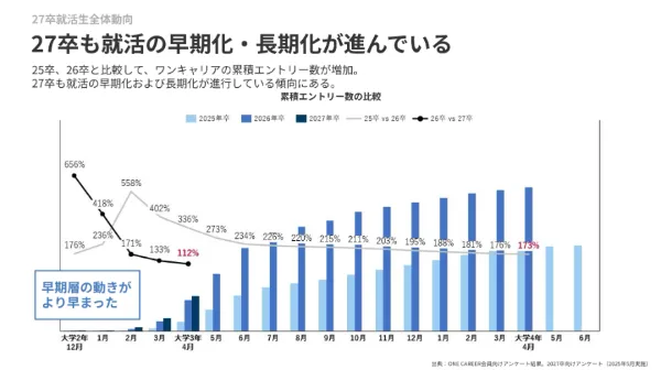 - 27卒学生を対象にした夏インターン直前の調査結果をもとに、関西の学生の志向や行動、採用市場の最新トレンドについてまとめました。 夏インターン施策の設計や今後の採用戦略の参考として、ぜひご活用ください。