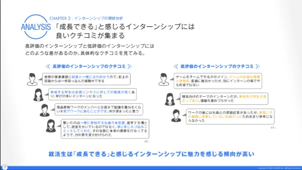 クチコミを活用したインターン採用設計とは? こんな方におすすめインターンで学生の満足度を高め、志望度を向上させたい方インターンの最新動向や現状を把握したい方インターンを通じて学生を効果的に惹きつけたい方 概要クチコミデータを活用し、学生がインターンシップに期待するポイントや満足度を高めるための施策を紹介します。 資料で分かることインターンの動向と現状現状分析からの効果的なインターンの設計方法クチコミをインターンに活用する方法