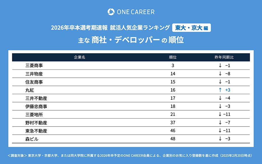 調査名:就活人気企業ランキング【東大・京大編】26卒本選考期速報