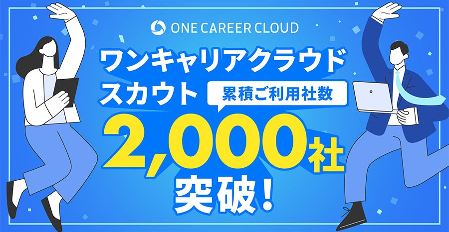 株式会社ワンキャリア(本社:東京都渋谷区、代表取締役社長 執行役員CEO:宮下 尚之、以下「ワンキャリア」)が展開するダイレクトリクルーティングサービス「ワンキャリアクラウドスカウト」の累積ご利用社数が、2,000社を突破しました。