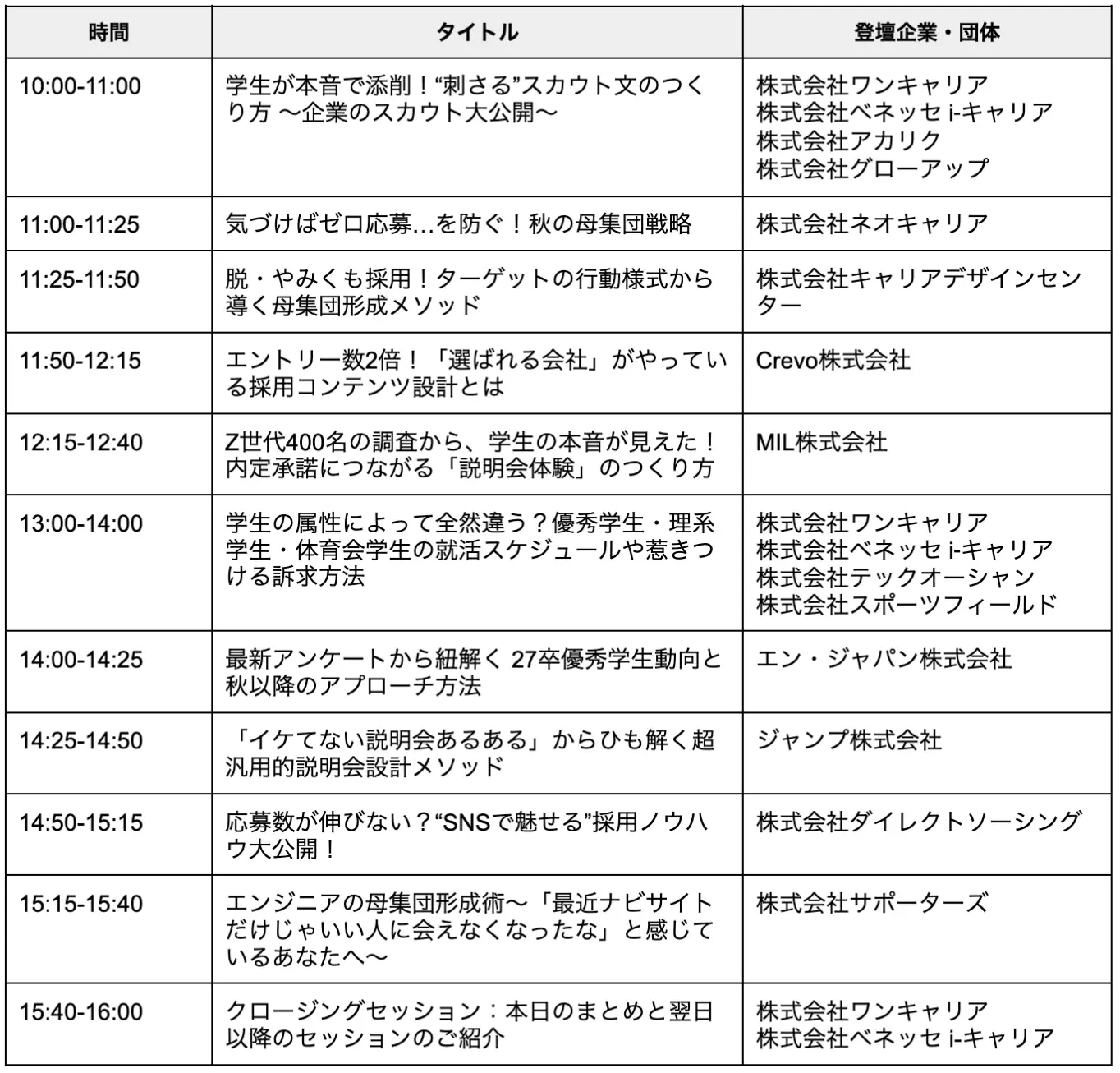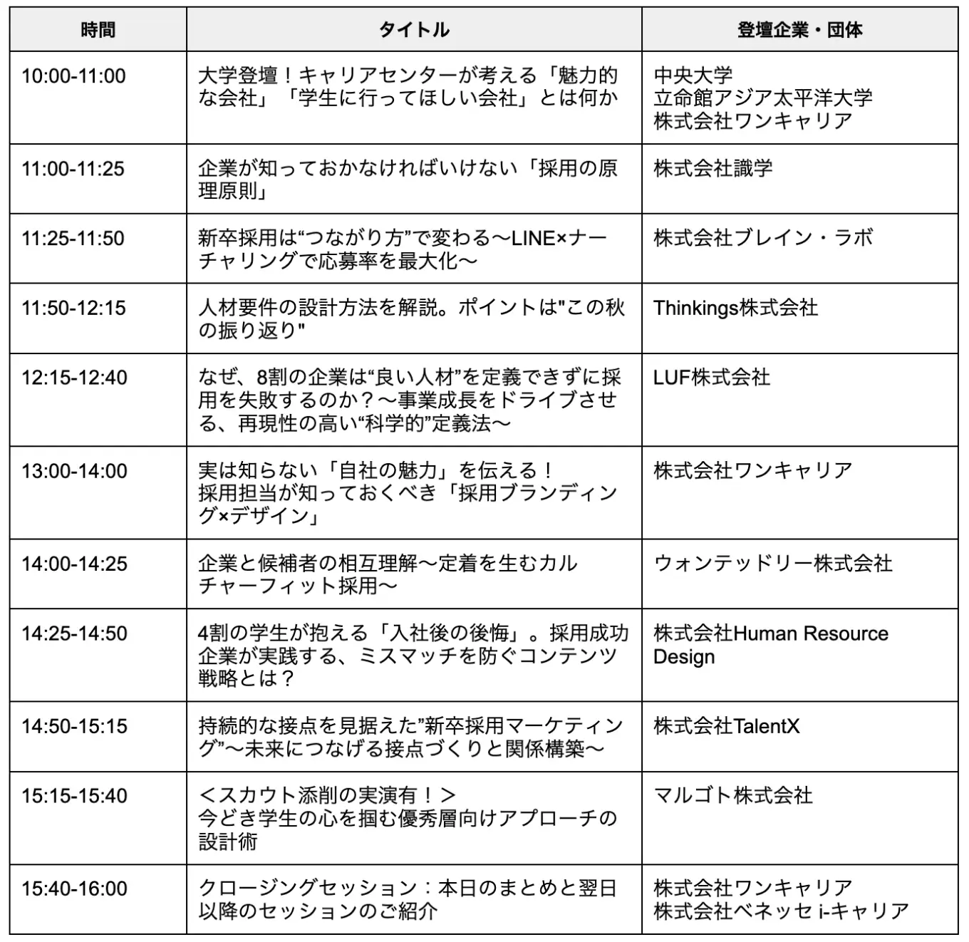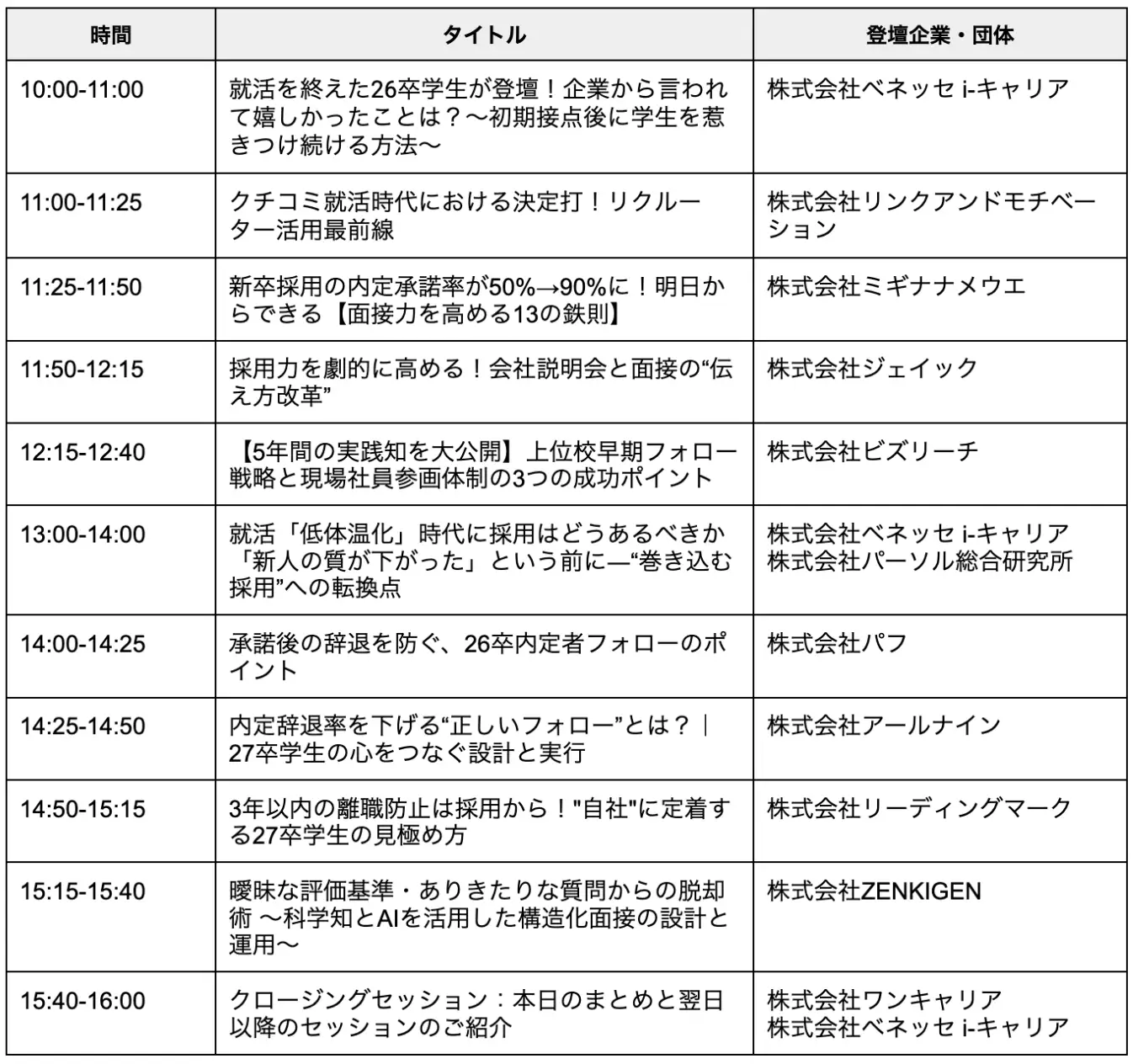参加対象:企業・団体の人事・採用担当者