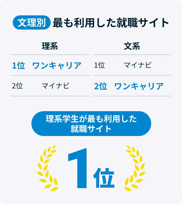 2026年卒学生の登録率は60%を突破し、ワンキャリアは就活生が最も活用した就職サイトで5年連続2位に。多くの学生への接点を生む媒体力が強みです。- 各年に大学もしくは大学院を卒業するユーザーの、卒業年度別学生の総数に対するシェア率。なお、卒業年度別学生数については、2022年入社者と同等の数値を採用。