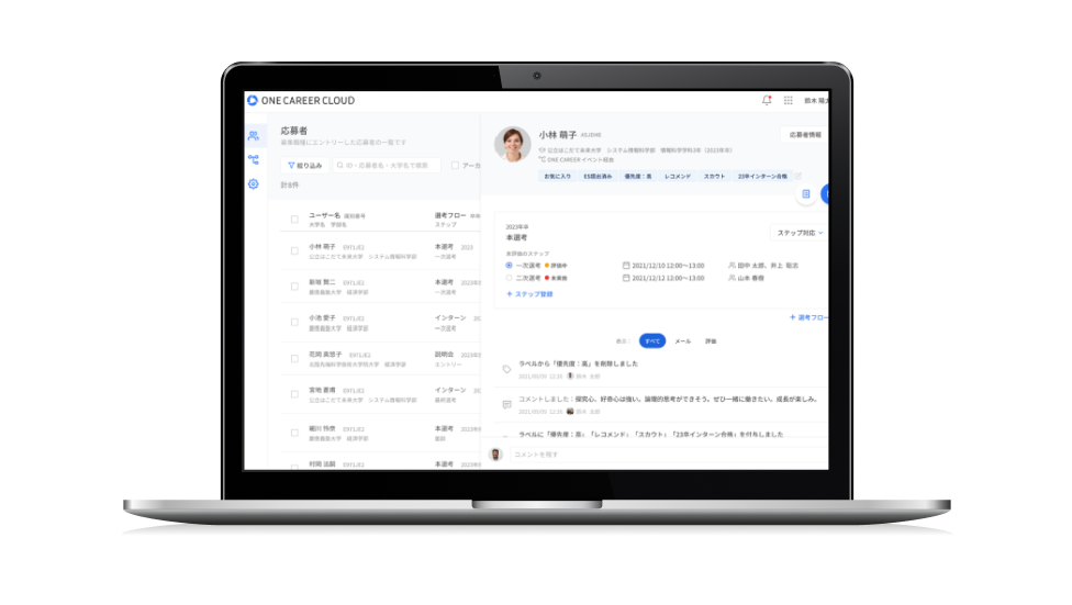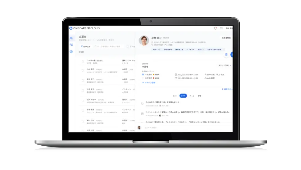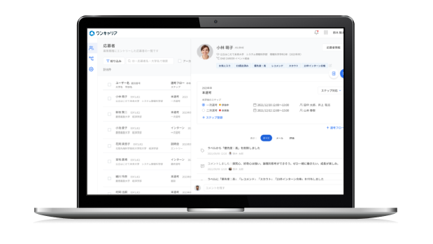 ワンキャリア経由応募の個人情報は、採用管理システム(ATS)に自動連携されます。