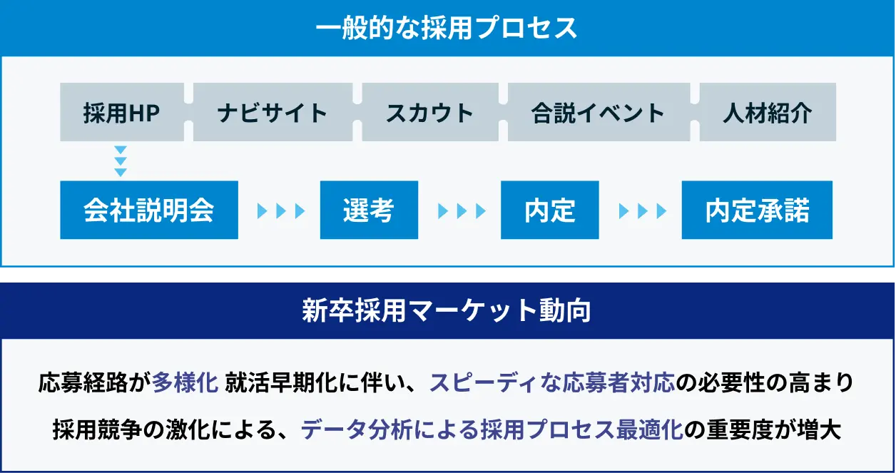 採用HP、ナビサイト、イベント、紹介会社など経路が様々で管理しにくい…