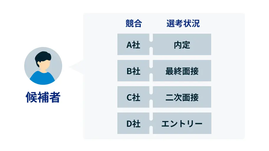 採用したい学生の内定有無や他社の選考状況を閲覧できます。