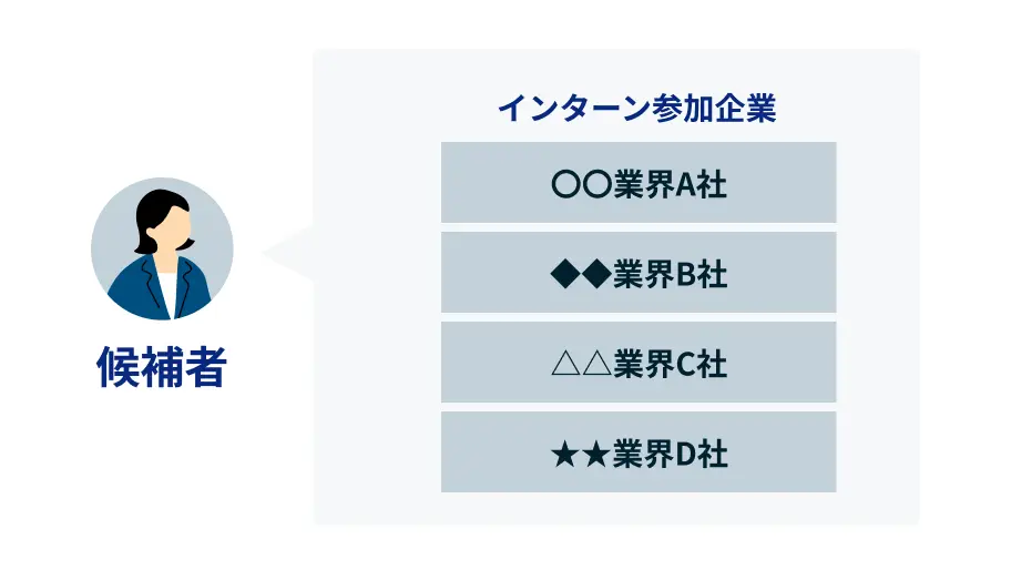 採用したい学生が過去どのような企業のインターンに参加したかを閲覧できます。