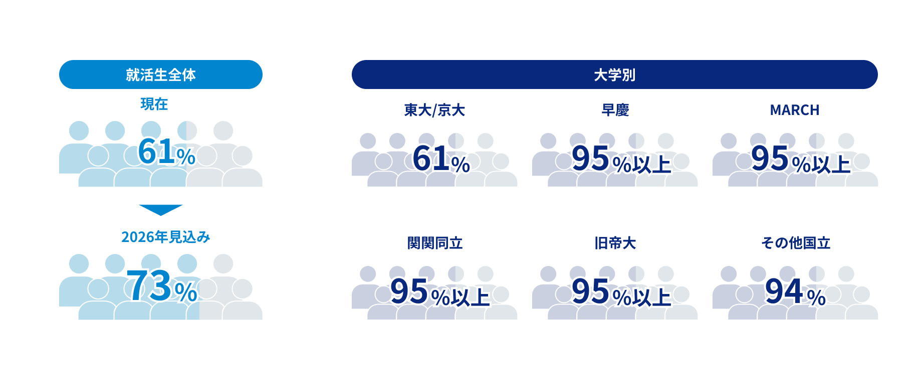 - 2025年3月に大学もしくは大学院を卒業するユーザーの、2024年に卒業する学生総数に対するシェア率。
