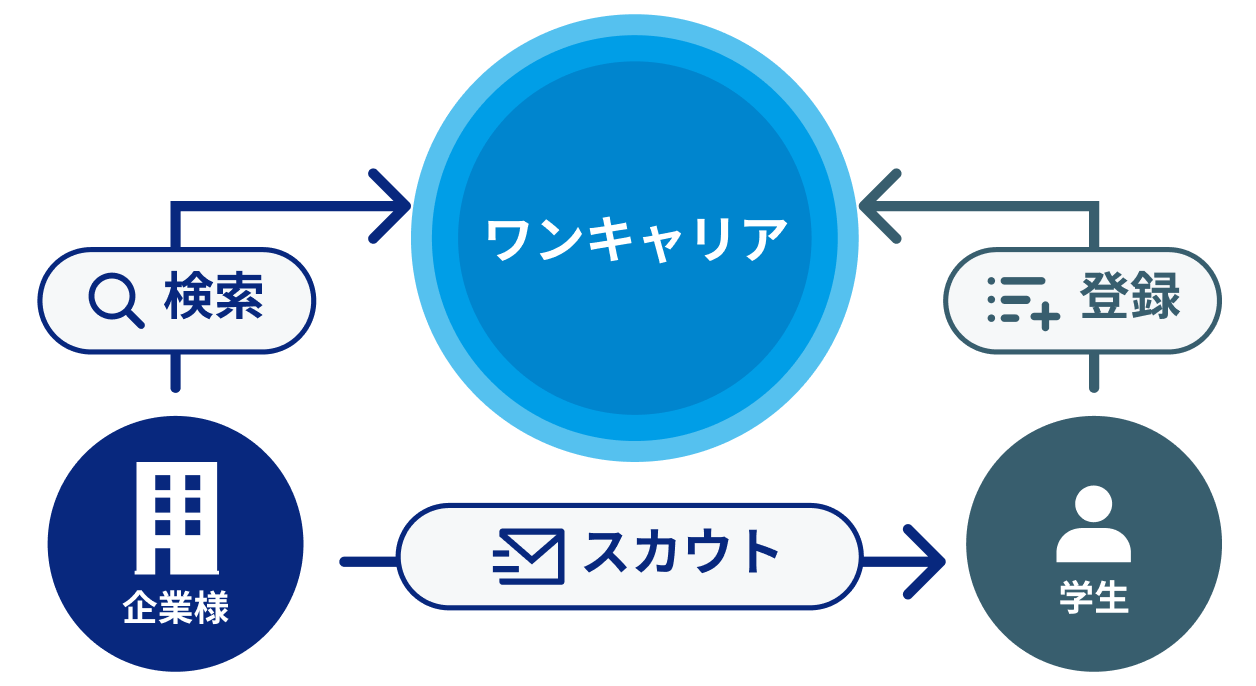就活生の半数以上が利用する「ワンキャリア」の登録学生に直接スカウトを送ることが出来るサービスです。